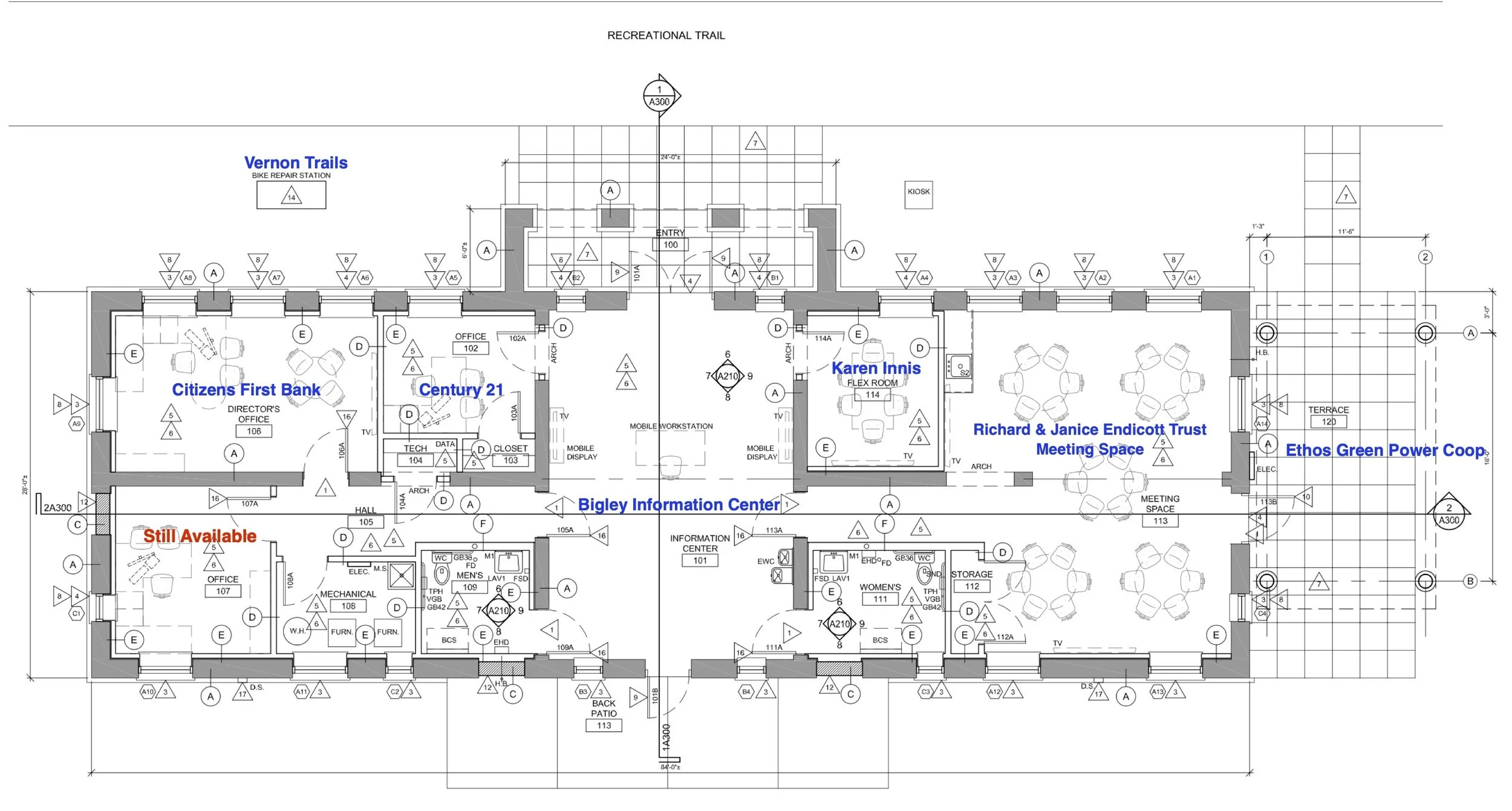 Viroqua Welcome Center Floorplan showing Naming Rights Purchased